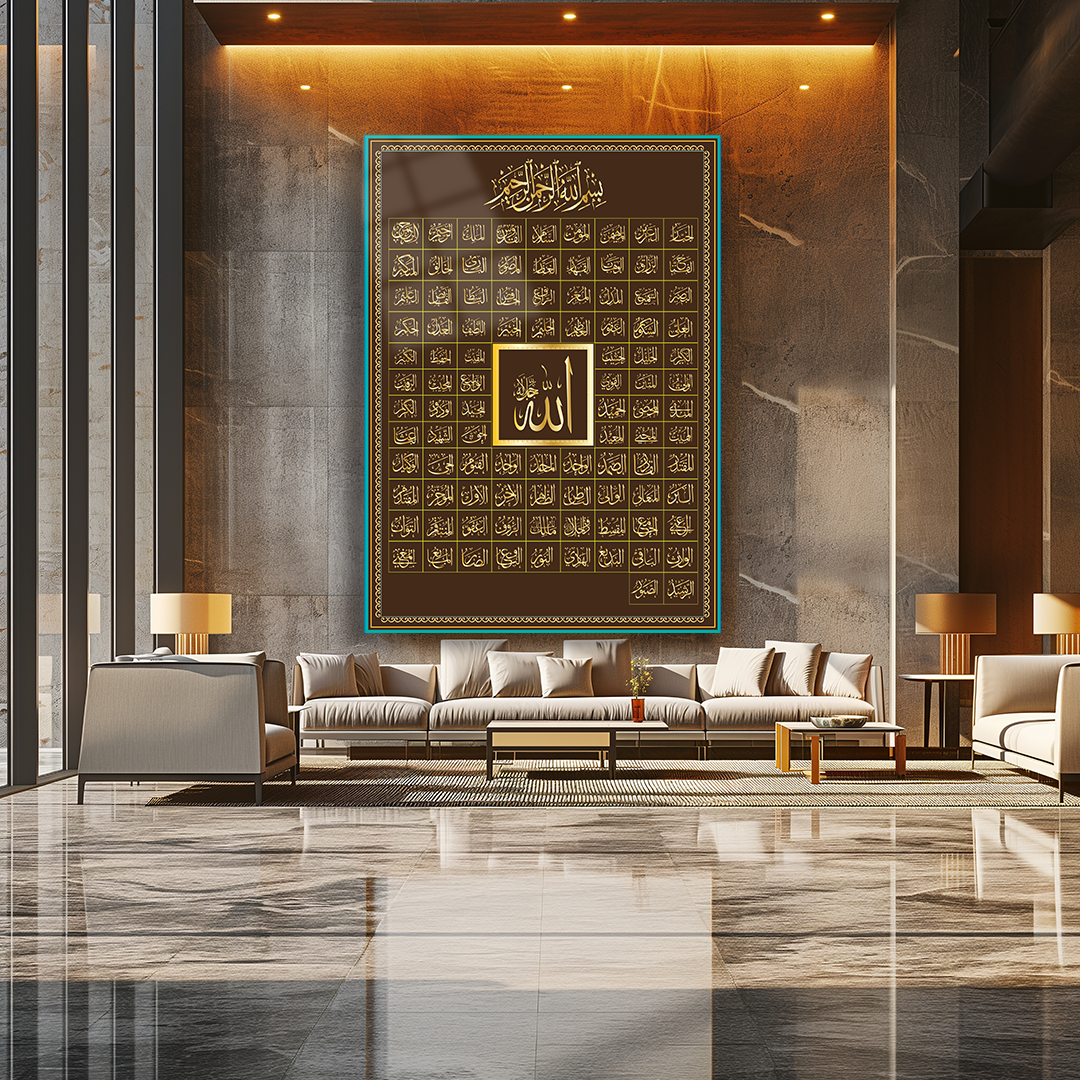 GLASS PAINTING WITH THE WRITTEN AL-ASMA AL-HUSNA