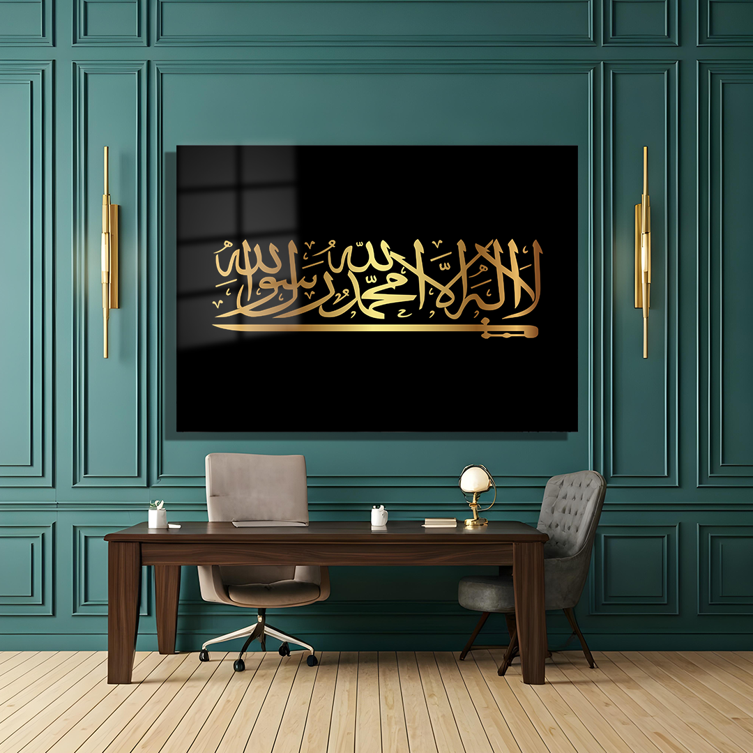 GLASS TABLE WITH THE WORD OF TAWHIT
