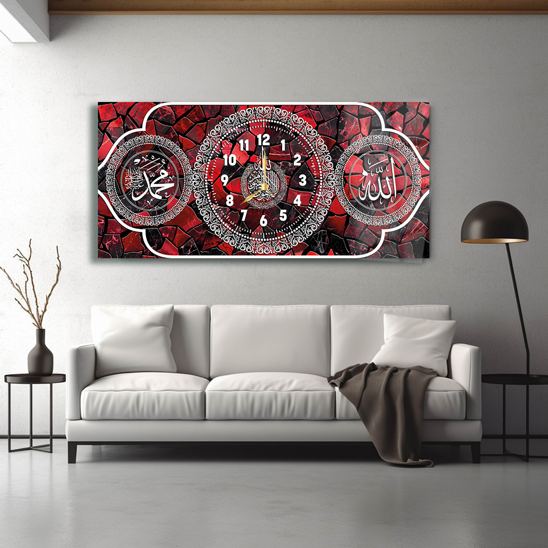 ALLAH (C.C) MUHAMMET (S.A.V) AYETEL KURSİ YAZILI SAATLİ CAM TABLO (Kopya) (Kopya) (Kopya) (Kopya)