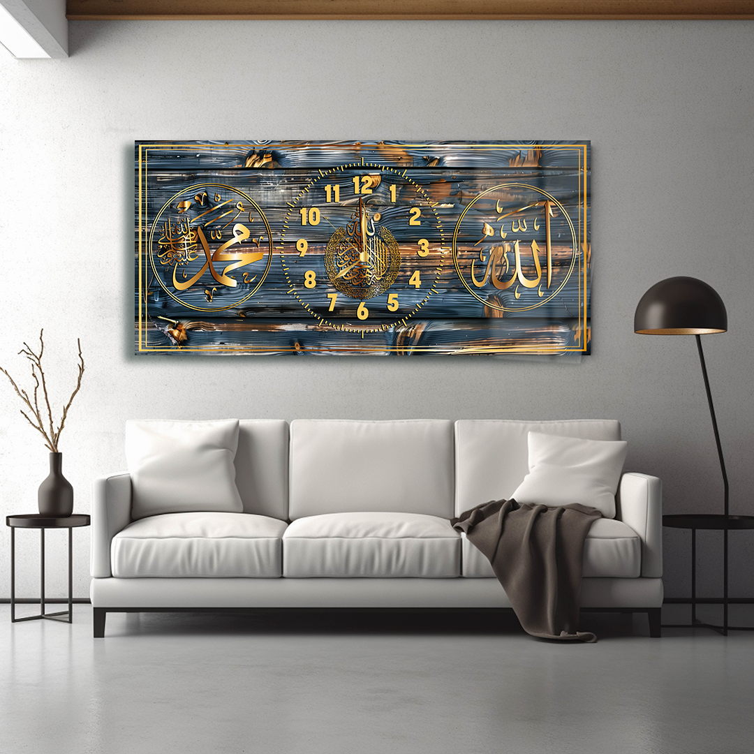 ALLAH (C.C) MUHAMMET (S.A.V) AYETEL KÜRSİ YAZILI SAATLİ CAM TABLO (Kopya) (Kopya) (Kopya) (Kopya)