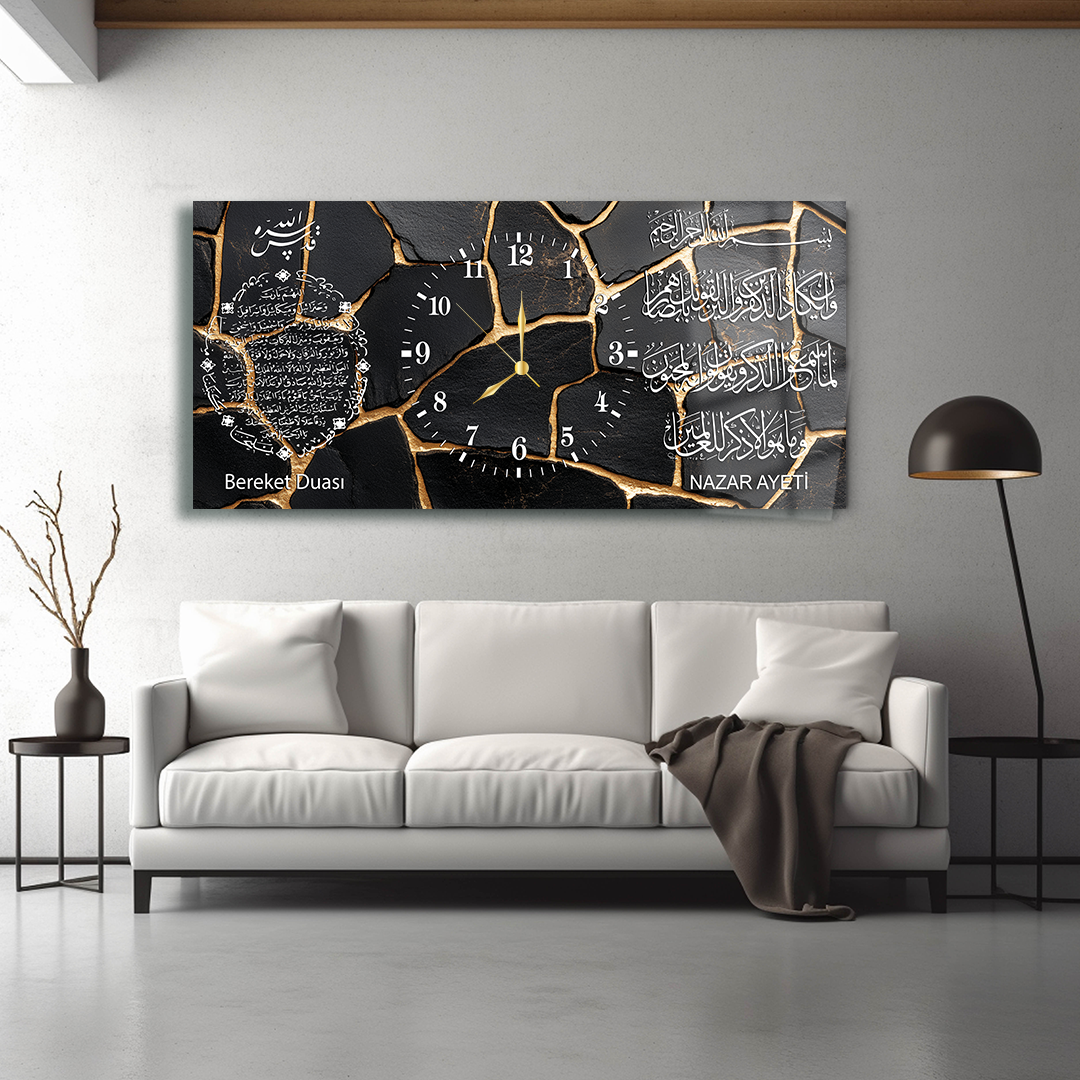 NAZAR AYETİ BEREKET DUASI YAZILI SAATLİ CAM TABLO